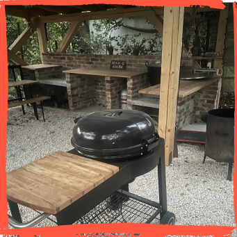 A nyárikonyhánkban minden adott egy jó bográcsozáshoz vagy grillezéshez, az italpultunkban pedig megtalálsz mindent, ami a nyugodt chillezéshez kell.