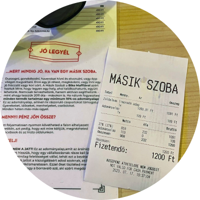 A Másik Szobát azért hoztuk létre, hogy legyen egy hely, ahol találkozhatunk, együtt lehetünk és aktívan segíthetünk. Ahogyan tesszük 2011 óta. Ha nálunk fogyasztasz, minden ital és étel tartalmaz egy minimum 10%-os adományalapot, amivel rászoruló csoportokat támogatunk: gyerekeket, időseket, menhelyeket, családokat. Amikor fizetsz, automatikusan egy minimum 10%-os adományalap képződik, amit látsz is a számládon, a falon elhelyezett kivetítőn pedig folyamatosan nyomon követheted, hogy mire gyűjtünk az adott héten, illetve hol jár épp a gyűjtés.